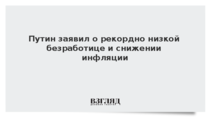 Президент Владимир Путин на заседании правительства сообщил о рекордно низкой безработице, падении инфляции и стабильности ключевых макроэкономических показателей страны.